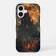 This **gothic fantasy scene** portrays a towering, ominous castle set against a massive, glowing full moon. The colors are deeply atmospheric, with **burnt orange, dark gray, and black** dominating the palette, evoking a sense of mystery and supernatural energy. The twisted, barren trees in the foreground and the glowing, candlelit windows within the castle create a haunting yet majestic ambiance. The towering spires, intricate gothic architecture, and the imposing moon suggest themes of ancient power, dark magic, or a forgotten legend. A cloaked figure walking toward the castle adds an element of intrigue, as if the viewer is witnessing a tale of destiny unfolding.