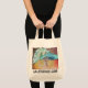 The printing came out very well, better than I had anticipated. The natural color fabric is sturdy with strong seams and comfortable handles. This tote fits easily over my shoulder. As it is filled, the bottom flattens out--very cool! I would buy this product again. This grocery tote holds a lot of groceries! The image quality was very good. The colors were a little darker than I had expected. The darkness may have been due to printing on a natural color fabric rather than on white. The cat design is attractively centered on the tote. The spirit of the design is very lively, just as it appears on the Zazzle website.
