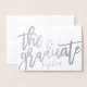 A MODERN REAL FOIL GRADUATION CARD FEATURING ON TREND CALLIGRAPHY WITH SPACE FOR A PHOTOGRAPH AND MESSAGE TO YOUR GUESTS.