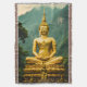 This image captures the reverence and grandeur of Thai Buddhist art. The Gilded Buddha is depicted in a deep meditative posture (Dhyana Mudra), radiating calm and light against a dramatic backdrop of the Thailand deep green jungle foliage and soaring, mist-shrouded limestone peaks. The rich gold of the statue, complete with the iconic spire (Ushnisha), offers a vibrant contrast to the natural, verdant landscape.