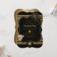 A luxurious Gold-black, art-deco style party invite card - The playful gold silk texture draped through two wedding rings and the glamourous girl in the corner with a corsage wrapped over the cutlery give this card a welcome look