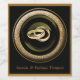 A luxurious shimmering gold button with two wedding rings on a dramatic black background bottle label