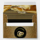 A luxurious shimmering gold silk texture draped through two wedding rings on a dramatic black background with a Deco style stripe to give the design a chic and glamourous look to personalise for your wedding stationary