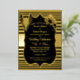 A luxurious shimmering gold on a dramatic black background with a Deco-style stripe gives the design a chic and glamourous look on the foil