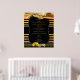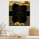 A luxurious shimmering gold silk texture draped through two wedding rings on a dramatic black background with a Deco style stripe to give the design a chic and glamourous look to customise menu poster