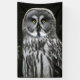 The Great Grey Owl - Portrait of a great grey owl standing on a log photographed looking directly at the camera.