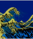 A custom design inspired by the Great Wave of Kanagawa painted by ancient Japanese artist Hokusai. It is rendered in a vibrant blue pop art style. Sounds good, a great gift idea.
