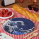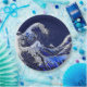 A custom design inspired by the Great Wave of Kanagawa painted by ancient Japanese artist Hokusai. It is rendered as to look like silver chrome steel on a racy modern navy blue carbon fibre like background. Sounds good, a great modern gift idea.