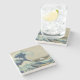 The coasters are gorgeous, a quality feel and heavy weight. They look like a precious archeological find. A rustic stone juxtaposed with a modern floral black and white print. I like the way the print goes slightly imperfect on the cut stone edges giving them a kind-of natural beauty.