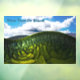 A primarily green fractal image resembling forested hills, with the addition of a a partly cloudy sky, In honour of The Green Hills of Earth, a science fiction short story by American writer Robert A. Heinlein which first appeared in print in 1947. Customise by adding your own text.