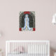 A prayerful statue sits surrounded by candles under a celtic knotwork archway. Featuring some red tulip-shaped knots.