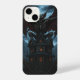 A dark and chilling design featuring a skeletal bat demon looming over a haunted gothic mansion, its fiery red eyes burning with malevolence. The eerie house glows with sinister light, while twisted roots and stormy skies heighten the ominous atmosphere. This artwork embodies gothic horror, making it an ideal phone case design for fans of the macaber, haunted houses, and supernatural nightmares.