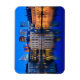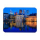 Rectangular photo magnet of the skyline of the Hague city, the government centre of the Netherlands, at the beginning of the evening at Blue Hour with the modern architecture skyscrapers behind historic Mauritshuis museum, Binnenhof parliament building and Hofvijver lake.