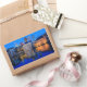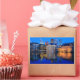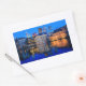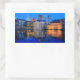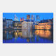 Rectangular photo sticker of the skyline of the Hague city, the government centre of the Netherlands, at the beginning of the evening at Blue Hour with the modern architecture skyscrapers behind historic Mauritshuis museum, Binnenhof parliament building and Hofvijver lake.