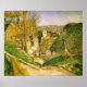 The Hanged Man's House, Auvers-sur-Oise. Paul Cezanne. A lovely landscape in cool green tones. Along the road sloping down there are large houses with green roofs. There are large trees near the house. Pale purple sky with clouds. Reproduction of famous works of art images in the public domain.