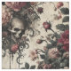 In The Hanging Gardens of the Arcane, cascades of roses, dahlias, and peonies spill from ornate scrolls, entwined with the silent grins of weathered skulls. The blooms drip in shades of wine, blush, and shadowed jade, suspended in an opulent waltz between beauty and decay. Ideal for upholstery, drapery, or garments steeped in dark romanticism.