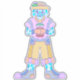 This digital drawing features a happy blue dog with blue spots, wearing a yellow hat, yellow shorts with colourful accents, a purple shirt, and cute gloves. He is holding a potted plant that he grew, showcasing his green thumb. The dog's expression is incredibly happy, and it's clear that he is proud of his plant. This artwork is perfect for anyone who loves cute and quirky animal art.