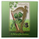 Square ceramic tile with a vintage image of the golden Harp of Erin adorned with a green bow and a pretty green shamrock. A black top hat lies on the ground beside it with a green hat band. See matching candy jar, mug and paper plate. See the entire St. Patrick’s Day Tile collection under the HOME category in the HOLIDAYS section.