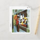A fine art postcard with the painting by the German expressionist artist, August Macke (1887-1914) titled Hat Shop (1914). A woman with an orange parasol window shopping at a hat shop.