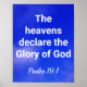 An inspiring poster, this design reads "The heavens declare the Glory of God" "Psalm 19:1" in big bold white text. There is a photo of a blue sky in the background. Order yours today!