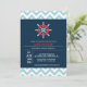 A nautical-theme invitation with a light blue and white chevron background overlaid with a navy blue panel to hold your party details and a ship's tiller. (<a href='http://www.freepik.com/free-vector/birthday-card-with-nautical-elements_886557.htm'>Designed by Freepik</a>). <br/><br/>The card is easy to customise with your wording, font, font colour, paper shape options and choice of six paper types.<br/><br/>Not exactly what you're looking for? All our products can be custom designed to meet your needs at no extra charge.<br/><br/>Simply contact us at heartfelthelper@gmail.com.<br/><br/>Coordinating products available: Just ask us!