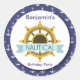 A sticker in navy blue and white with a circular anchor pattern and a centre helm with a banner featuring the word "nautical". <a href='http://www.freepik.com/free-vector/rounded-sailing-badges-in-flat-design_863884.htm'>Designed by Freepik</a>. The card is easy to customise with your wording, font, font colour, paper shape options and choice of six paper types.<br/><br/>Not exactly what you're looking for? All our products can be custom designed to meet your needs at no extra charge.<br/><br/>Simply contact us at heartfelthelper@gmail.com<br/><br/>Coordinating products available: Just ask us!