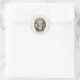 A round sticker featuring a vintage graphic of the two Trinities, The Holy Trinity of Father, Son and Holy Ghost and the Holy Family, of Jesus, Mary and Joseph, with the Latin prayer, Familia Sacra, Ora Pro Nobis, Holy Family, Pray For Us. Thanks for looking!