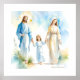 A delicate portrait of the Holy Family, with Saint Mary, the Child Jesus and St. Joseph. United by the hand, they walk together towards us to take us by the hand and walk with them in Peace, Hope and Faith. Computer graphic with painting, watercolor effect.