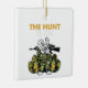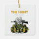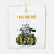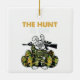 Gear up for the holiday with this unique "Tactical Bunny" Easter ornament. Featuring a rabbit in full camouflage gear and a military-style vest saluting in front of camo-patterned eggs, this square ceramic keepsake includes the bold text "The Hunt Is On." It is the perfect gift for veterans, hunters, or anyone who appreciates a touch of humor and grit with their spring celebrations.