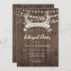 Rustic country style deer antlers "The Hunt is Over" design with strings of lights on a barn wood backdrop, ideal for an evening outdoor wedding, barn wedding, fall wedding, country wedding, cowboy wedding.....Please personalise it with your own text occasion-accordingly or click the "Customise It" button to go to the design tool where you can add text, change the font, text size, text colour, text positioning, and more. For questions & custom requests, click "contact" and leave us a message. **Coordinated templates can be found in the collection showing below or by pasting this url into your browser: https://www.zazzle.com/collections/rustic_antlers_hunt_is_over_wedding_collection_1-119776334247121435?rf=238919973384052768&CMPN=share_dclit&lang=en&social=