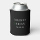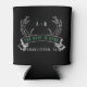 Custom Wedding Can Cooler, Wedding Favour - The Hunt is Over antlers banner design with personalised couple's initials, the bride and groom's names, wedding date, and location.