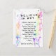 The I Believe In Art Manifesto, IBelieveInArt.com Promotional Postcard by Victoria Lynn Hall. For anyone who believes in art.