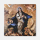 This is a gorgeous Spanish depiction of the Immaculate Conception! The beautiful dark haired Virgin Mary is dressed in white and blue and holds her hands together. She is surrounded by adorable cherubs holding flowers. A white dove is seen to her side.