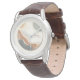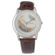 The watch looks really great! Very sharp and well done. The leather band is really nice, though for a man's watch I think it should be longer. Unfortunately, it isn't big enough for my husband's wrist but I will get a replacement because he is very excited to wear it!
