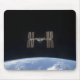 The International Space Station backdropped by Earth's horizon featured with Earth.