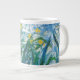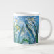 1918 painting by Monet in an Impressionistic style. Beautiful blue with green leaves and yellow flowers