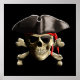 Original classic Skull and Crossbones, The Jolly Rodger”, with red bandanna doo rag and pirate hat.