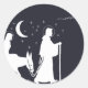 Unique Christmas design featuring a white stamp of Mary and Joseph on the journey to Bethlehem seen in the distance.