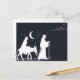 Unique Christmas design featuring a white stamp of Mary and Joseph on the journey to Bethlehem seen in the distance.