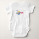 Dogs love classical music. At some animal shelters, the dogs go to sleep each night with the soothing sounds of classical music. When the music begins, they all stop barking and settle down to sweet dreams. The designs in this "Dogs love classical music." series celebrate the intuitive connection between dogs and this wonderful music. The original artwork by ZoeSPEAK on this Baby Bodysuit features a portrait of the composer Ludvig van Beethoven. The portrait is in an ornate gold frame, on a wallpaper background of yellow suns and uplifting spirits against a medium blue. In front is a photo of a dog, commenting (in English and French), and pointing with red arrows to the composer. The text says "The Joy of Beethoven", with reference to his ninth symphony, Ode to Joy.