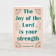 This greeting card is blank on the inside so you can write your own note or greeting. Popular Bible verse "The Joy of the Lord is your Strength." Nehemiah 8:10b. Great card to send to encourage your Christian friend or relative.