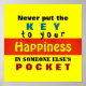 NEVER PUT THE KEY TO YOUR HAPPINESS IN SOMEONE ELSE'S POCKET. Spread the word! Gossip, truism, gossipers, words to live by, modern, abstract, friends.