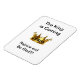 Golden crown on magnet with the words the "King is coming. rejoice and be glad" with "Jesus" name on the crown