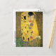 The Kiss was painted by the Austrian Symbolist painter Gustav Klimt between 1907 and 1908. The canvas depicts a couple embracing, their bodies entwined in elaborate robes decorated in a style influenced by both linear constructs of the contemporary Art Nouveau style and the organic forms of the earlier Arts and Crafts movement. The work is composed of oil paint with applied layers of gold leaf, an aspect that gives it its strikingly modern, yet evocative appearance.