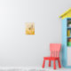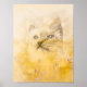 This print is a delicate picture of a kitten in soft shades of yellow and black with tiny flowers along the bottom edge.