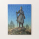 Upon a pile of rocks stands a mighty knight in armor. Protected by a bucket helmet and mail armor beneath a tabard bearing the symbol of a red cross, he holds a massive sword at his side. This is a Templar knight.