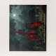 Step into a mysterious and haunting scene with this gothic-inspired jigsaw puzzle. A woman in a flowing red dress stands solemnly in a shadowy churchyard, surrounded by ancient tombstones and misty, moonlit skies. The eerie yet captivating atmosphere makes for a mesmerizing puzzle experience, perfect for those who love dark romance and gothic esthetics.