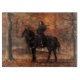 Here is a spirit of Halloween, a human manifestation of the season: A black robed woman, on the back of a midnight black horse, holds aloft a lantern in a forest rich in the yellow, orange, and red leaves of fall. Her face is half concealed behind a dark hood, yet you can still see that the gazes directly back at you, the viewer. The dark steed looks directly at you as well, steam blowing from it's nostrils, a much angrier visage than that of its peaceful rider.