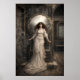 This is an original fantasy art image derived from an antique Victorian era black and white pen and ink drawing of the mediaeval Arthurian Lady of Shalott.