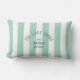 The perfect personalised lumbar pillow for your indoor or outdoor space by the lake... Green nautical stripes with blue distressed custom "The Lake House" crest. Personalise with the year, lake and destination. Perfect as a memento for a past trip. Matching accessories available in The Lake House Green Nautical Stripe Collection.